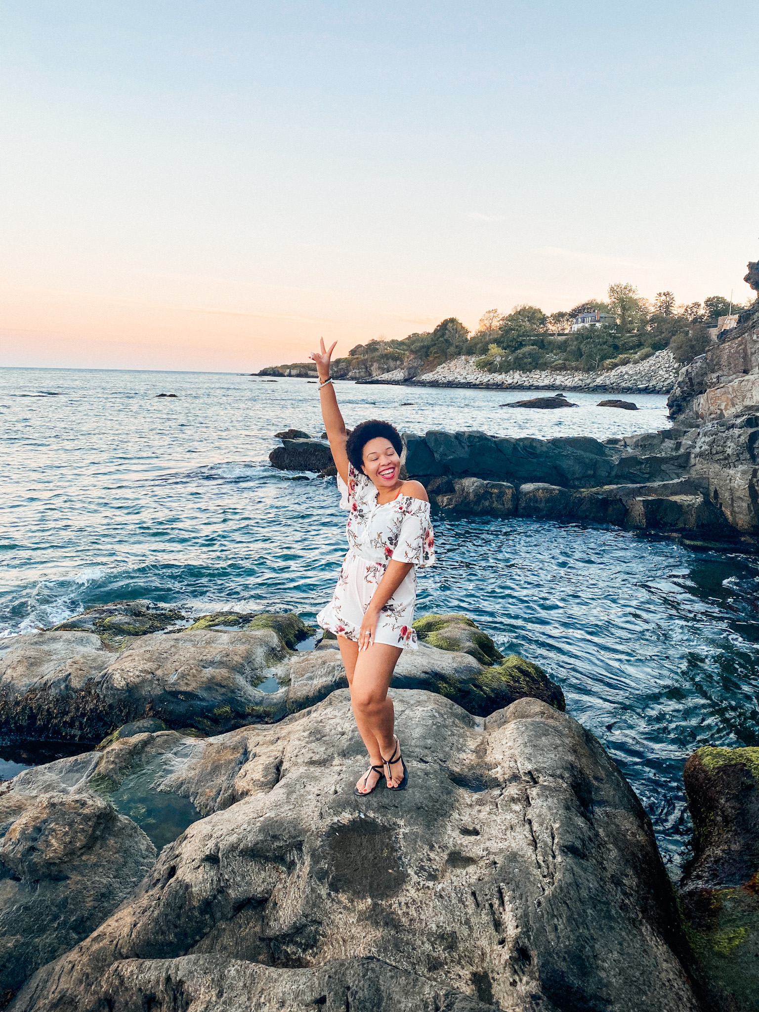 We made it a day trip. It started off with brunch at Tickets Bar & Grill, then we went and got our toes wet in the ocean. Being from the Caribbean, I can’t swim in cold water, and the water in Rhode Island during this time of the year is C-O-L-D. We were able to frolic around and take some pictures. When it was all said and done, we decided it was time to go catch the sunset at the top of Forty Steps of the Cliff Walk.